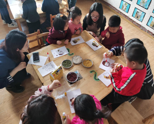 支部党员王滔首先为小朋友们讲解了盆栽种植和种子画制作的理论知识。而后,党员分组对小朋友们进行了实践指导。