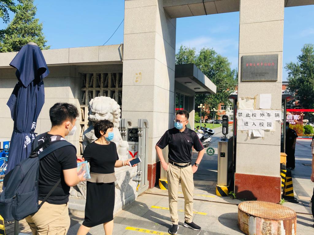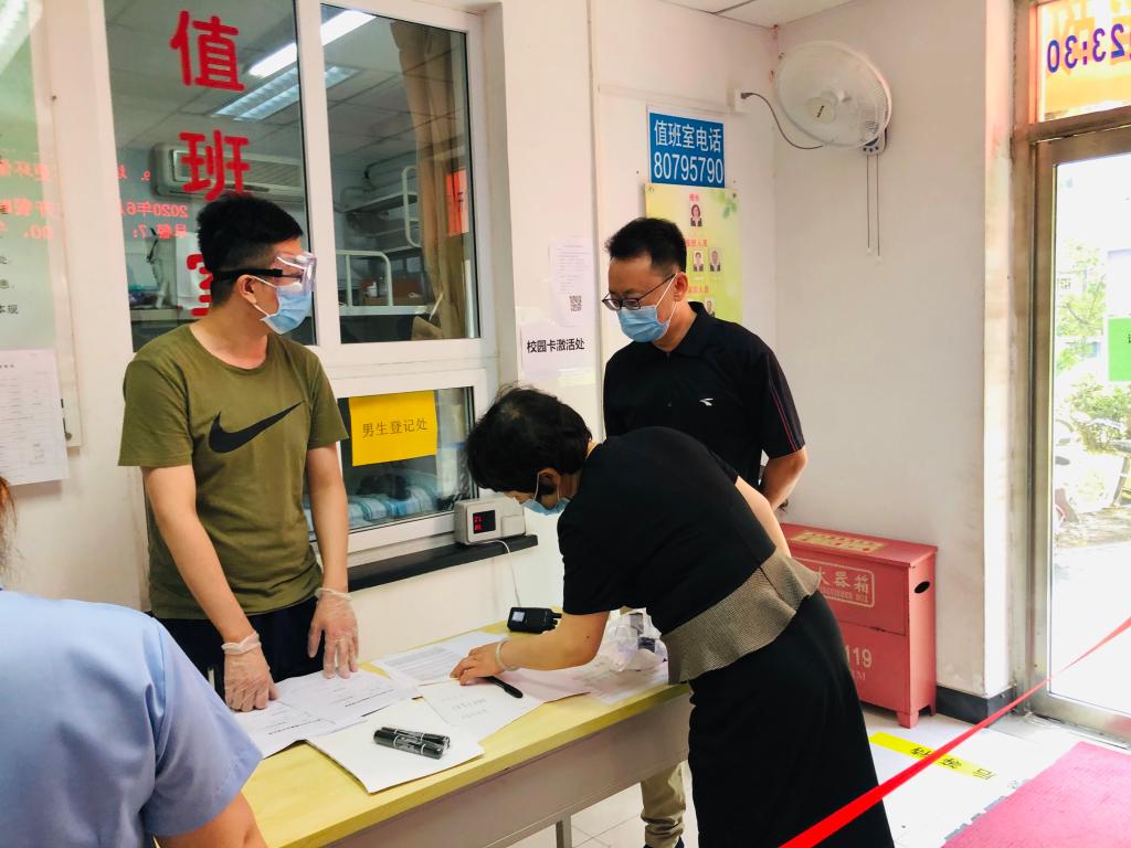 所有参与工作的老师7月6日上午8点前全部就位,严阵以待,迎接毕业生的到来,同时严格按照学校的要求做好防控工作,确保学生返校安全有序。返校的毕业生也都严格按要求佩戴好口罩,在老师的指引下,间隔排队,经过扫码核验、体温检测等流程后,通过人脸识别系统闸机口进入校园,到宿舍楼再进行二次身份核验,登记,整个流程有条不紊,井然有序。老师们的细心关切、身体力行,以及一系列严格又暖心的举措,让久别归来的毕业生学子倍感温暖。