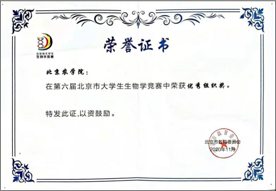 日前,第六届北京市大学生生物学竞赛中央民族大学落下帷幕。第六届北京市大学生生物学竞赛由北京市教委主办,中国农业大学、中央民族大学共同承办。竞赛分为“北京市大学生生物学实验设计竞赛”、“北京市大学生生物学奇思妙想竞赛”和“北京市大学生生物学基础知识竞赛”三个独立的子竞赛。竞赛历时两个月,我校被授予优秀组织奖。