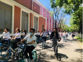 为倡导同学们绿色出行、低碳减排的生活方式,党支部组织开展“绿色校园行”低碳骑行活动。党员和入党积极分子统一身着白色T恤,按照礼堂—一食堂—图书馆—二食堂—动物医院—操场—礼堂的路线进行骑行活动并打卡留念,宣传低碳绿色出行。