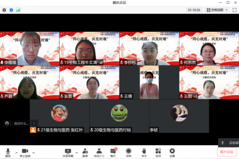生物工程研究生党支部以线上线下结合的方式组织召开“同心战疫,共克时艰”主题党日活动,后勤基建处副处长刘林场应邀参加。活动由生物工程研究生党支部书记申维维主持。