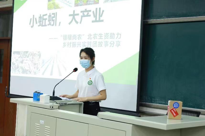 生物工程专业的研究生魏佳同学以“小蚯蚓 大产业”为题,展开自己为乡村振兴贡献力量的故事。初到大棚,她坦言实际情况与自己的想象大相径庭,这里并非又脏又臭而是十分干净有序。本次社会实践活动,小组成员全程参与废弃物样本分析和规程制定等工作,真正的走进基层她才深刻认识到鲜花必须开在牛粪上才能长得如此艳丽。“自天降康,丰年穰穰”。她说:“当下的乡村振兴事业需要青年学子的积极参与,作为农业高校的学生更是责无旁贷。将尽己所能,在服务首都乡村振兴的道路上有散一分热,放一分光!”