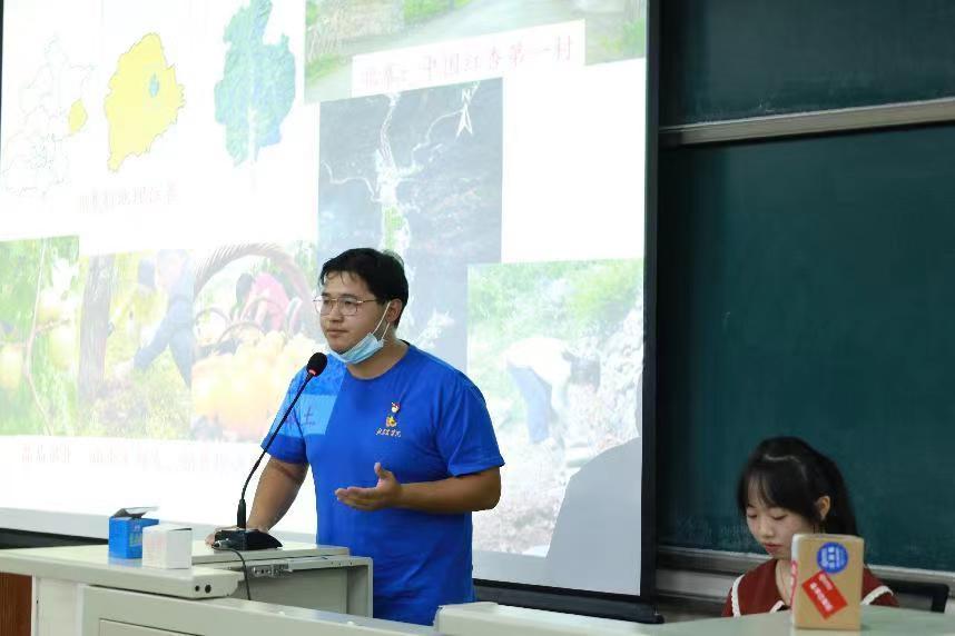 资源利用与植物保护的研究生李顺垒同学讲述了自己在暑假期间,投身科技小院,助力乡村振兴,与京郊果农成为彼此的三生有“杏”的故事。从一张张直观的图表、实景照片中,他向同学们讲述了自己走出实验室,走进农村中的故事。他表示未来作为一名农科学子,将继续把农业科技推广到田间地头,把论文扎扎实实地写在农民的收获里。