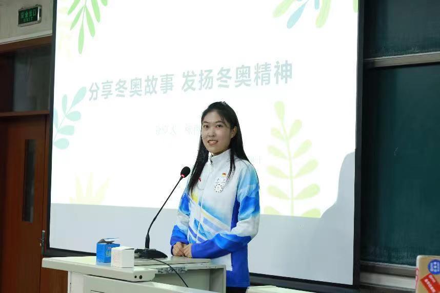 20级应用化学的本科生吉昱锟同学为大家介绍了自己担任北京冬奥会城市志愿者的经历。他向大家分享自己与冬奥会的情缘,小学时偶然从电视上观赏到北京夏季奥运会开幕,在他心里埋下了成为冬奥会志愿者的种子。疫情的原因使志愿者数量调整,但由于积极争取,他有幸能换一种方式为冬奥会贡献力量,于是成为城市志愿者。在分享自己在岗位上过春节的经历之后,他用凝练的语言表达出自己对于冬奥精神的理解:“彼此珍惜,相互关怀,用心守护”。