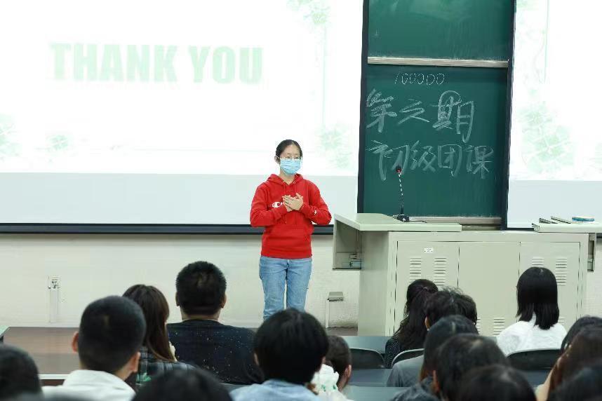 21级生物与医药的研究生王鑫同学向大家讲述自己热爱生活,向阳而生的故事。在学习上,她刻苦努力、奋勇争先,在学校内担任静茵手语社副社长、院青协办公室部长的工作中,她尽职尽责且上传下达落实到位。同时她也是一位积极的志愿者,志愿时长累计800小时。她表示自己将带着“一分耕耘,必有一分收获”的信念继续奉献自己的人生价值。在最后,王鑫同学为大家献上自己精心准备的《五四特别版错位时空》手语表演,让同学们感受到了她的信念和初心。
