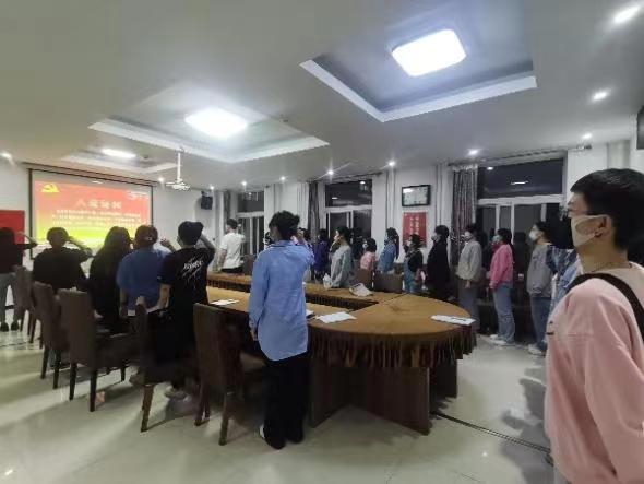 首先,由支部书记汪丽介绍本次活动流程及喜迎二十大开展的系列活动情况,并带领全体党员高举右手重温入党誓词。嘹亮的声响回荡在整个会场,庄严且有力量。