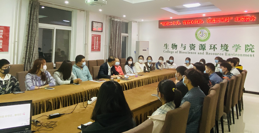 22级生物工程专业1班开展了以“喜迎二十大,青春心向党,奋进正当时”为主题的班会活动。校党委副书记仲丛生,学院党总支书记袁中立参会指导,全班在校学生参加活动,活动由班主任赵鹏主持。
