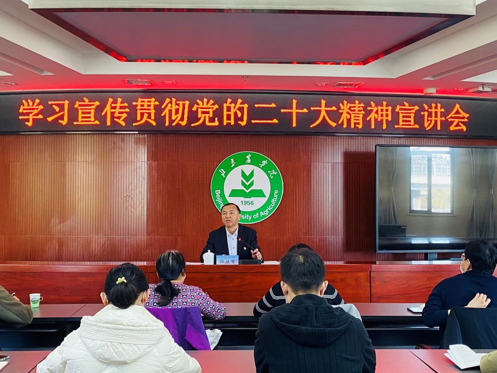 仲丛生强调,要推动党的二十大精神在学校落地生根、见行见效。一是以钉钉子的精神加强党的政治建设;二是要落实管党治党政治责任;三是建设新时代好干部队伍;四是善用“大思政课”用党的科学理论武装青年;五是培养一支服务乡村振兴的人才队伍;六是持之以恒抓好作风建设。要始终保持昂扬向上、奋发有为的精神状态,始终保持埋头苦干、真抓实干的工作作风,全力建设高水平应用型现代农林大学,为实现第二个百年奋斗目标做出新的北农贡献!