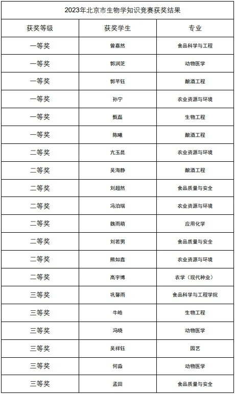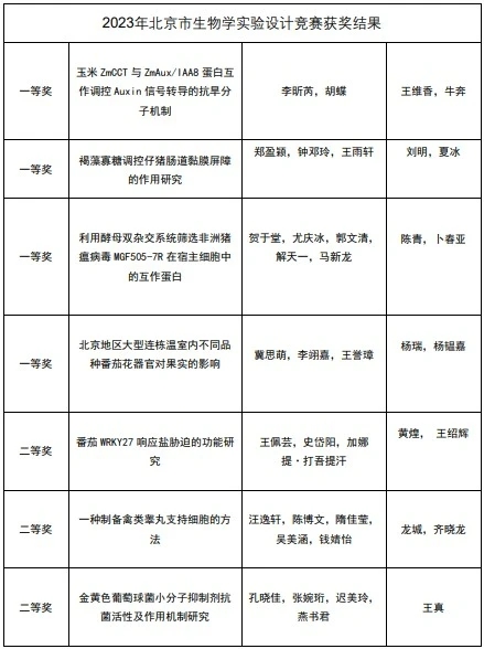 组织参赛的第九届北京市大学生生物学竞赛在中国农业大学西校区落下帷幕。第九届北京市大学生生物学竞赛由北京市教委主办,分为奇思妙想竞赛、实验设计竞赛和生物学知识竞赛三个单元。