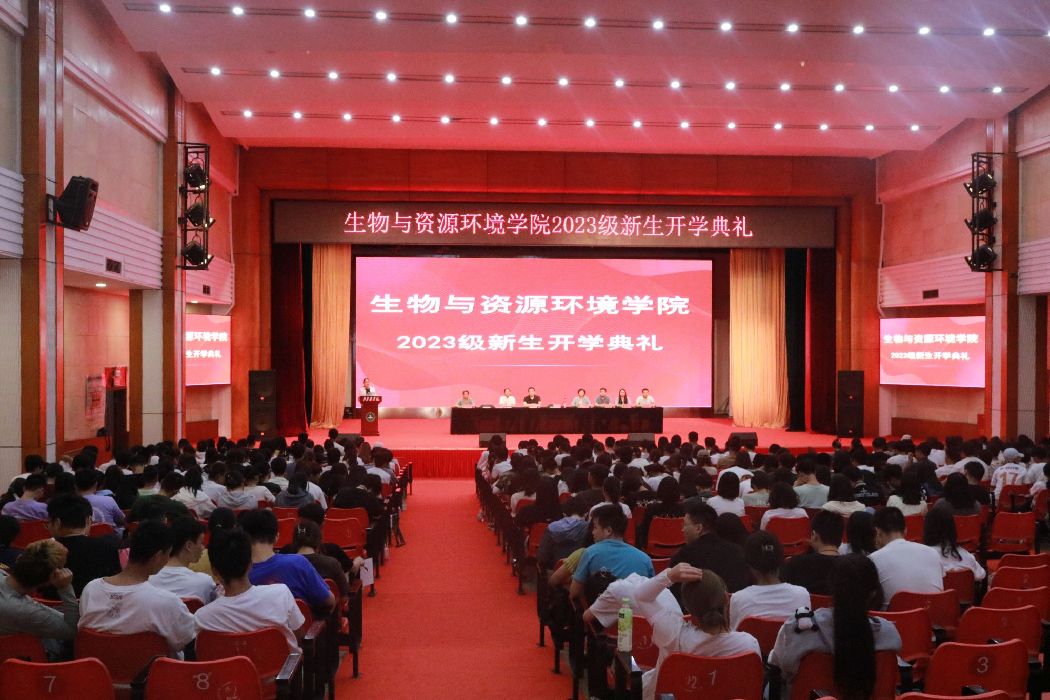 2023级新生开学典礼在礼堂举行。学院领导班子、优秀校友、各系负责人、班主任、辅导员、教师代表参会。开学典礼由学院党委书记袁中立主持。