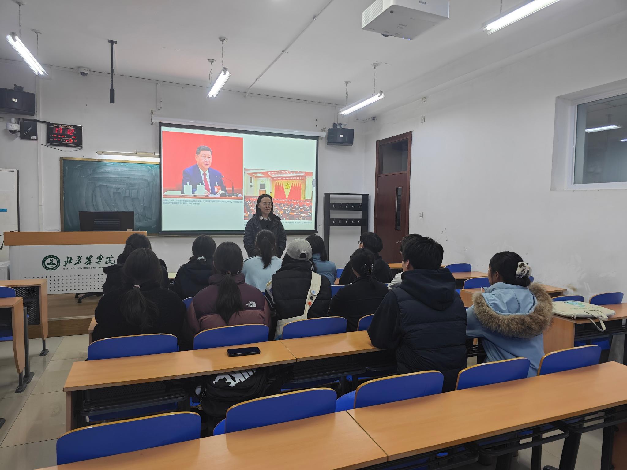 学生党支部则围绕“青年使命担当”畅谈体会。植物保护本科生党支部舒锦婷表示:作为一名农学学生,我深受鼓舞同时也倍感责任重大。“坚持人民至上”是“十五五”时期经济社会发展必须遵循的原则之一,这一原则落实到我们植物保护专业上,就是要将所学知识切实应用到为农民服务中,真正做到把论文写到京郊大地上,把科研成果汇聚在农民收获里,未来无论是身处科研岗位,还是投身基层工作,我都将不忘初心,牢记使命,用自己的所学和汗水,为加快农业农村现代化、建设农业强国贡献自己的一份力量,让青春在服务“三农”的广阔天地中绽放绚丽之花。