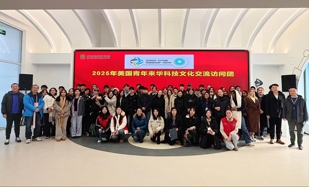 2025年12月22日,晴空万里,阳光驱散了寒意,正是冬日里难得的好天气,北京朝来农艺园-朝阳智慧农业科技小院迎来了一批特殊的客人,他们是来自美国的青年来华科技文化交流访问团,该访问团共60多人,包括美国多所高校的青年学生。
