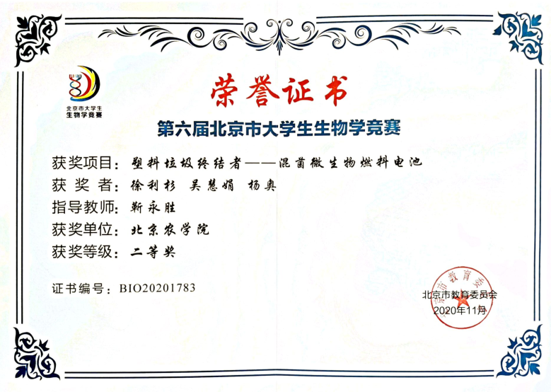 2020年第六届北京市大学生生物学竞赛奇思妙想二等奖