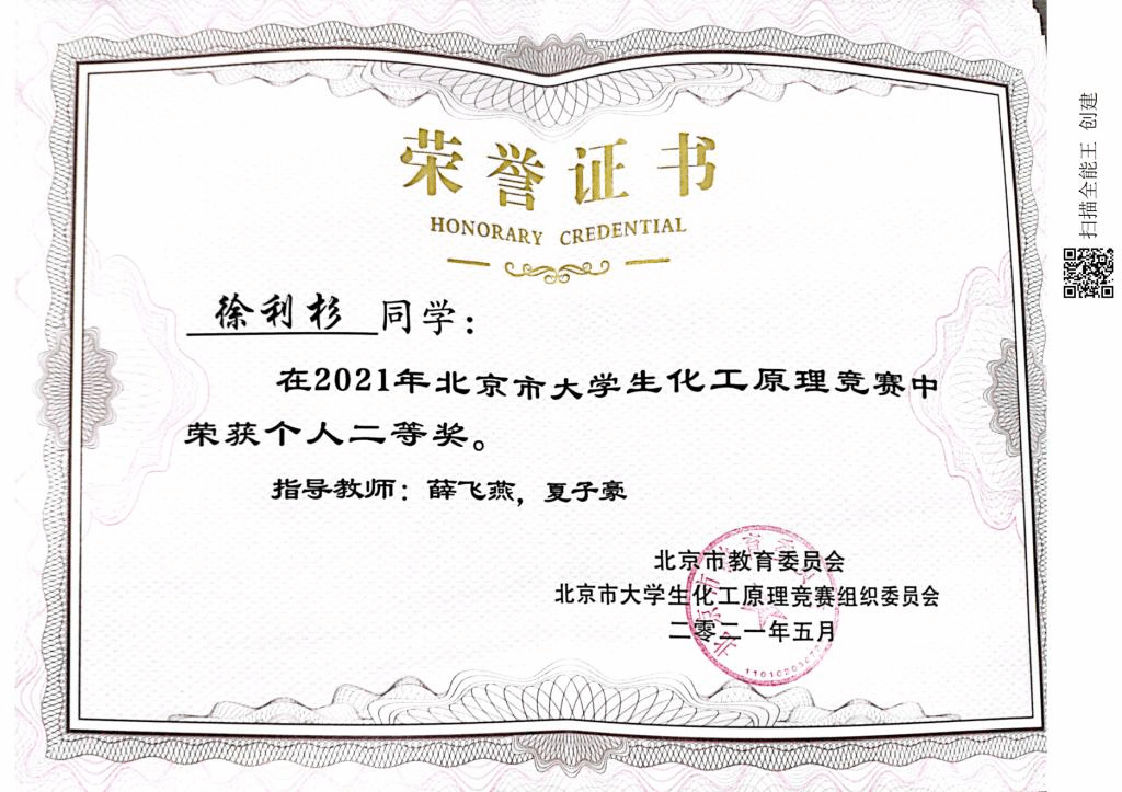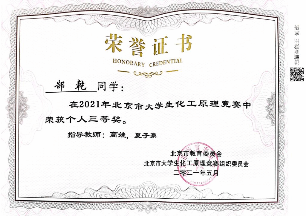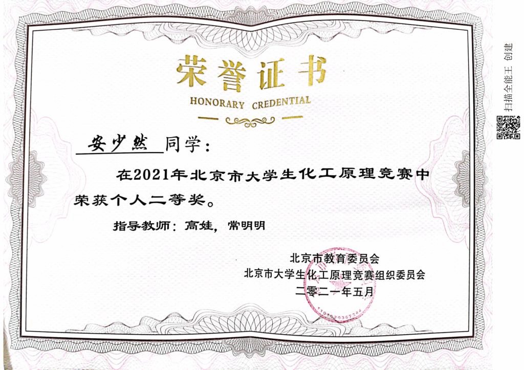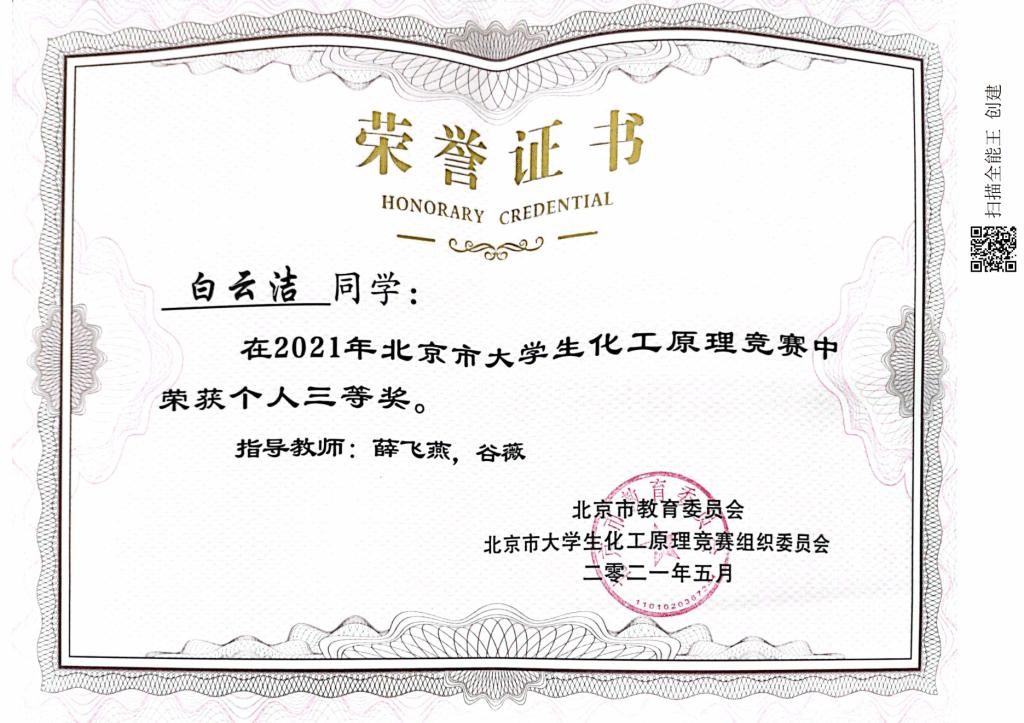 2021年北京市大学生化工原理竞赛