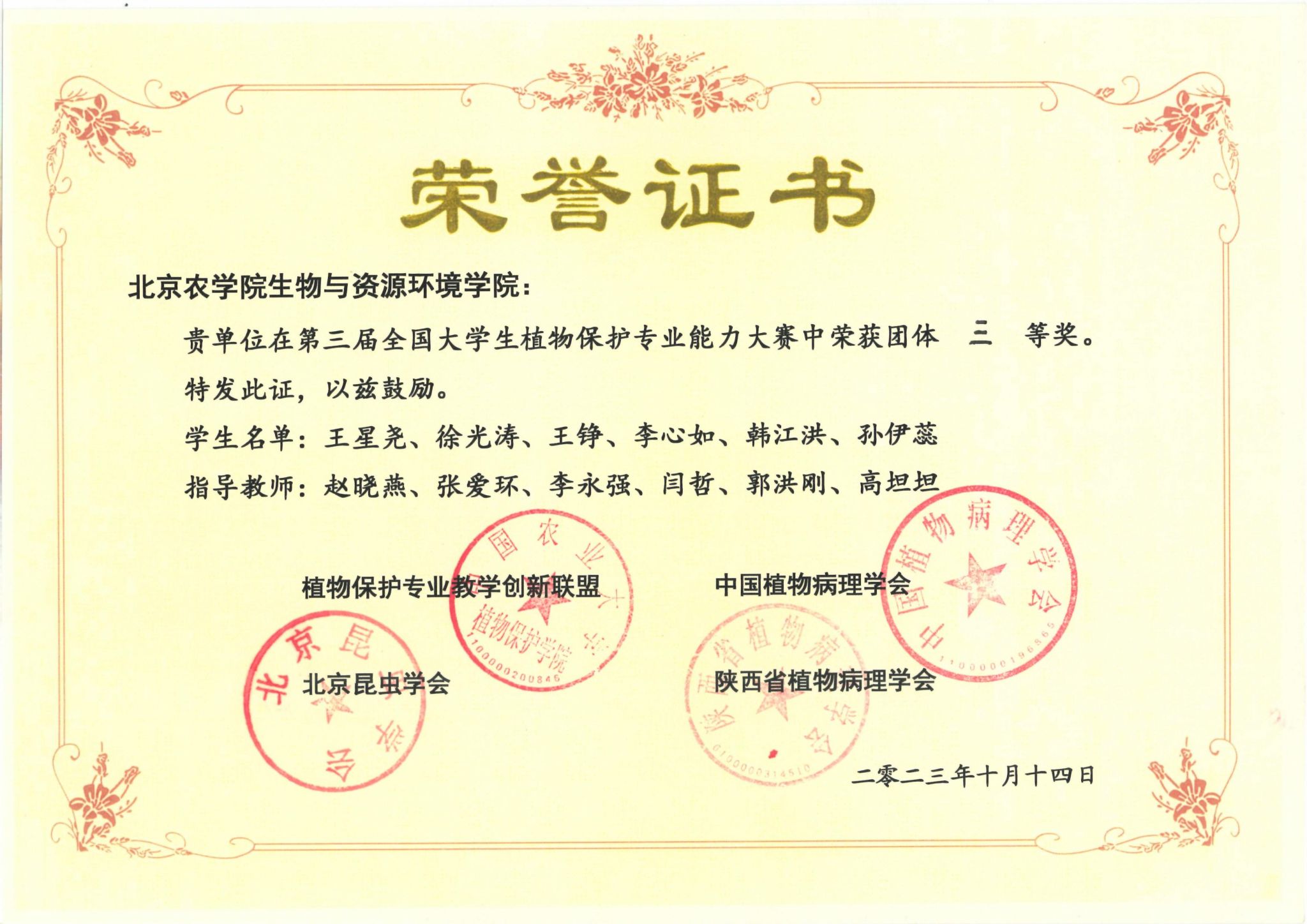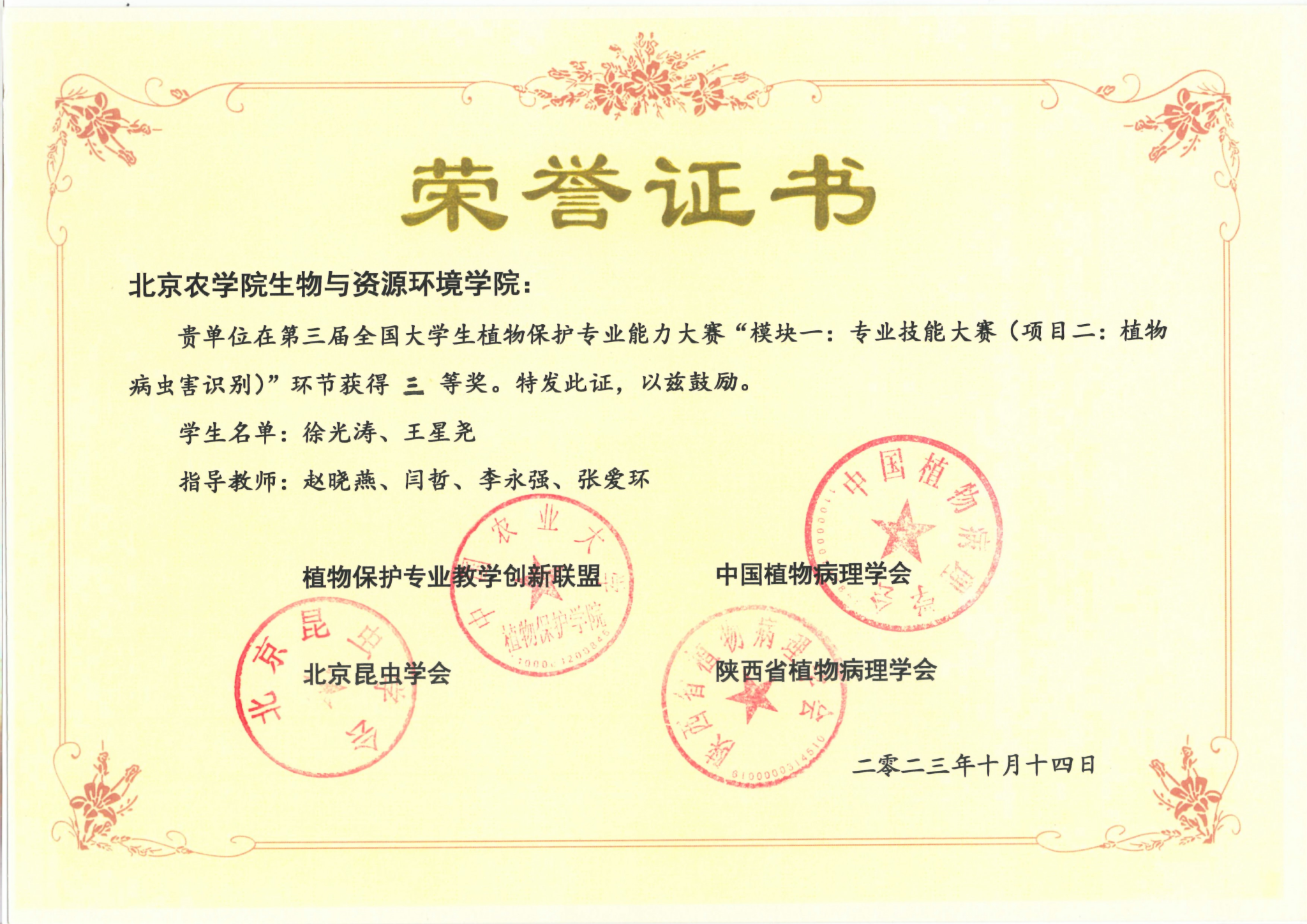 第三届全国大学生植物保护专业能力大赛