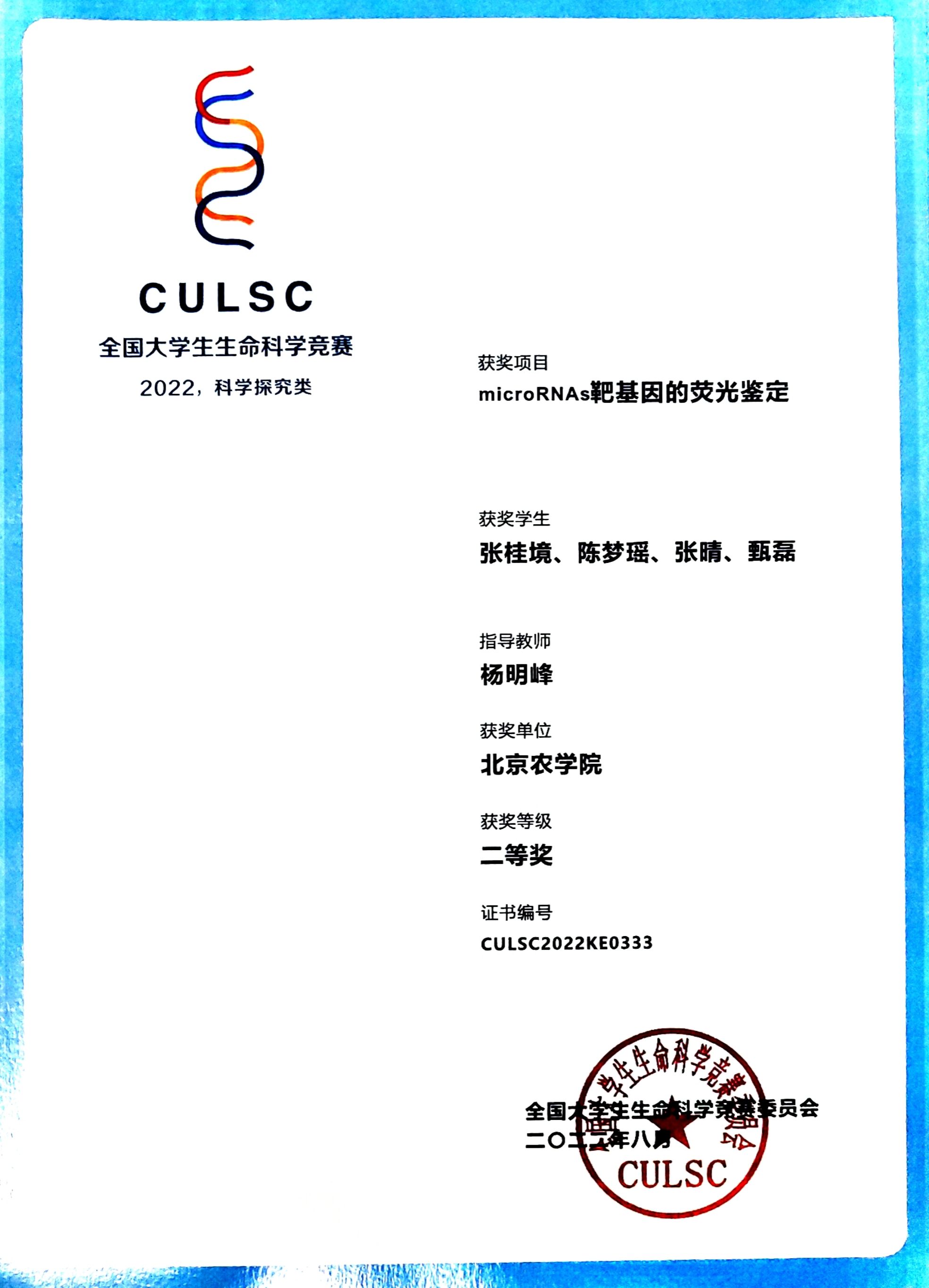 2022年生命科学竞赛二等奖(microRNAa靶基因的荧光鉴定)