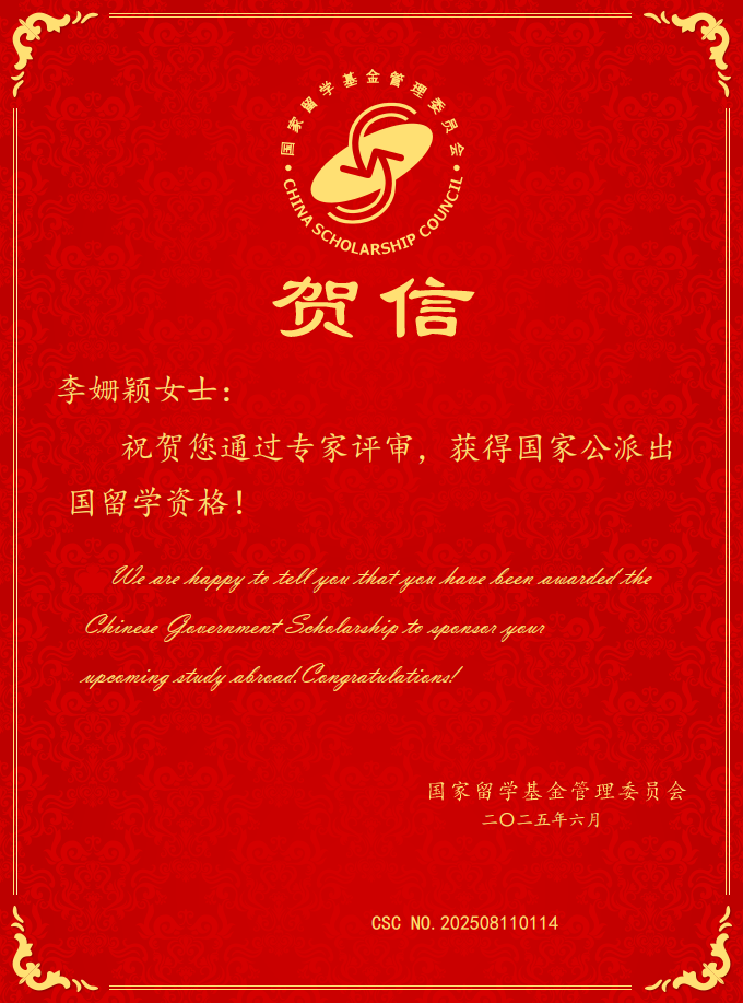 李姗颖:申请公派留学这段经历带给我的收获,远比想象中的要丰富得多,现在回想起来,那些熬夜改材料的夜晚、紧张到冒汗的英语对话练习,都成了最珍贵的成长养分。最直接的收获当然是申请成功本身,但是更宝贵的是,在这个过程中培养的能力。为了锻炼我的国际交流能力,在徐会松老师的安排下,我定期与外国教授练习交流。刚开始时,我连简单的自我介绍都说得磕磕绊绊。在经过反复多次的训练后,我掌握了英语的表达技巧,用西方的语言习惯对观点进行表达。这些技巧在后来的面试中发挥了关键作用。
