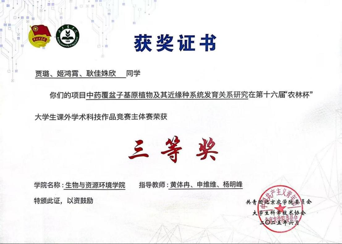第十六届“农林杯” 大学生课外学术科技作品竞赛主体赛 我校师生参赛获奖
