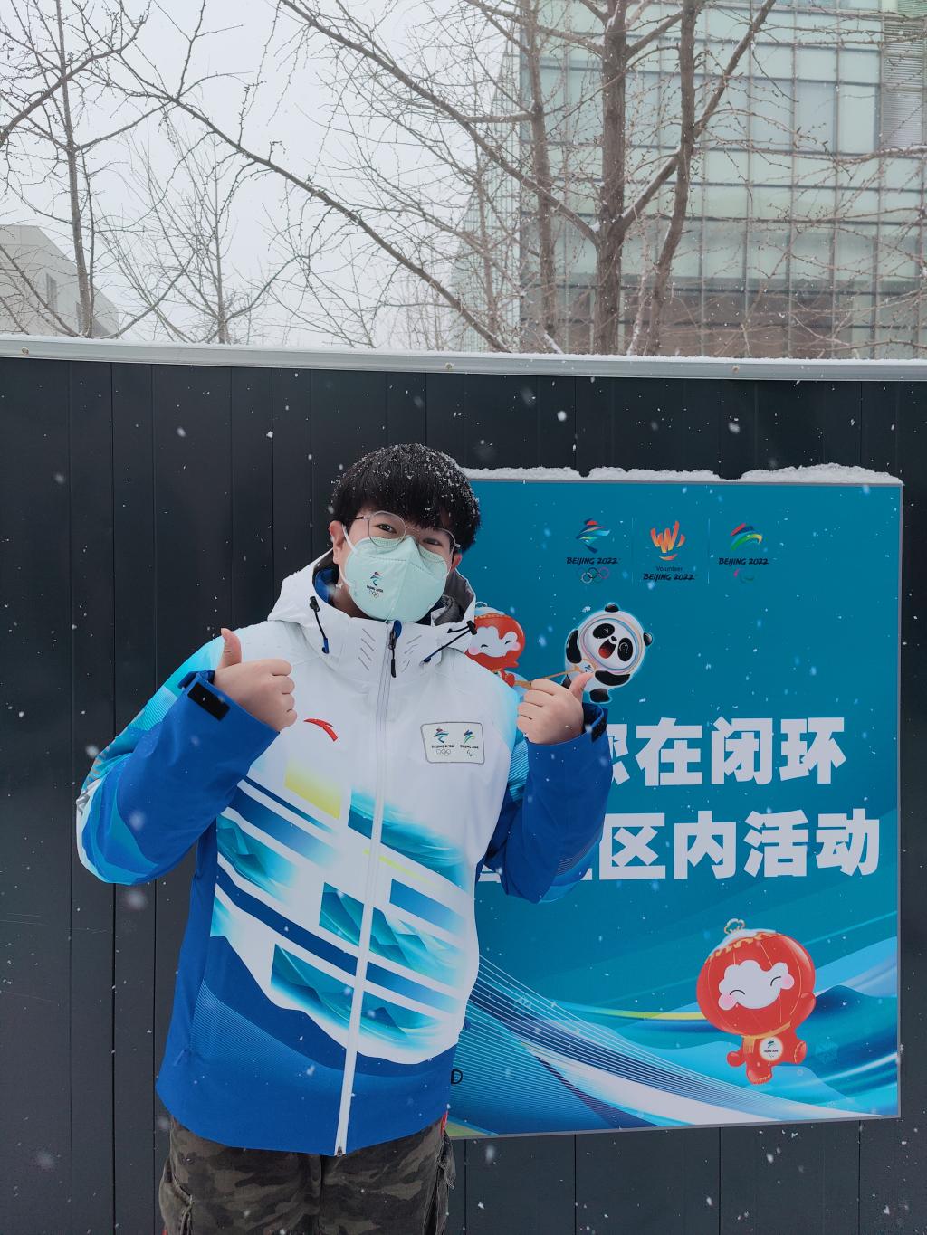 武运辉:回首2008年盛典,奥运火炬飞跃鸟巢,星星之火点燃整个北京的夜空,我在家乡为祖国骄傲;2022年跨越时间长河,北京再度接力,兑现了庄严承诺,并冠以不变的初心和热情迎接八方来客,而我也来到这座璀璨的“双奥之城”,并光荣地成为一名冬奥志愿者。时光在流逝,我们也在和我们的祖国一起成长。不懈的努力终将化为硕果,辛勤的付出终将有所收获。坚持就是胜利,拼搏成就梦想,让我们和冬奥会一起传承奥林匹克精神,点燃冰雪运动激情,一起向未来!
