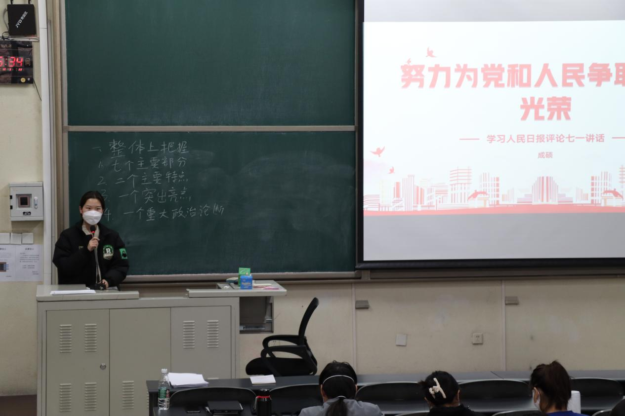 之后,党支部组织学生党员就“人民日报十三评‘七一’重要讲话”开展了微党课讲解活动。党员们在课前进行了精心的准备和备课,从不同的角度,为大家解读习近平总书记“七一”重要讲话精神。