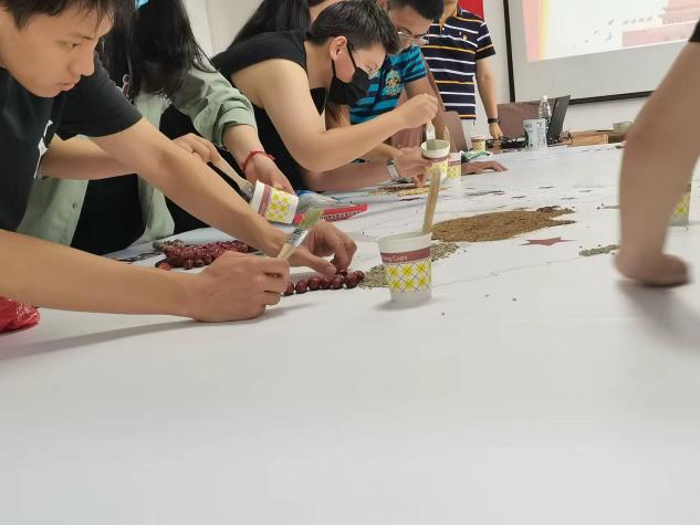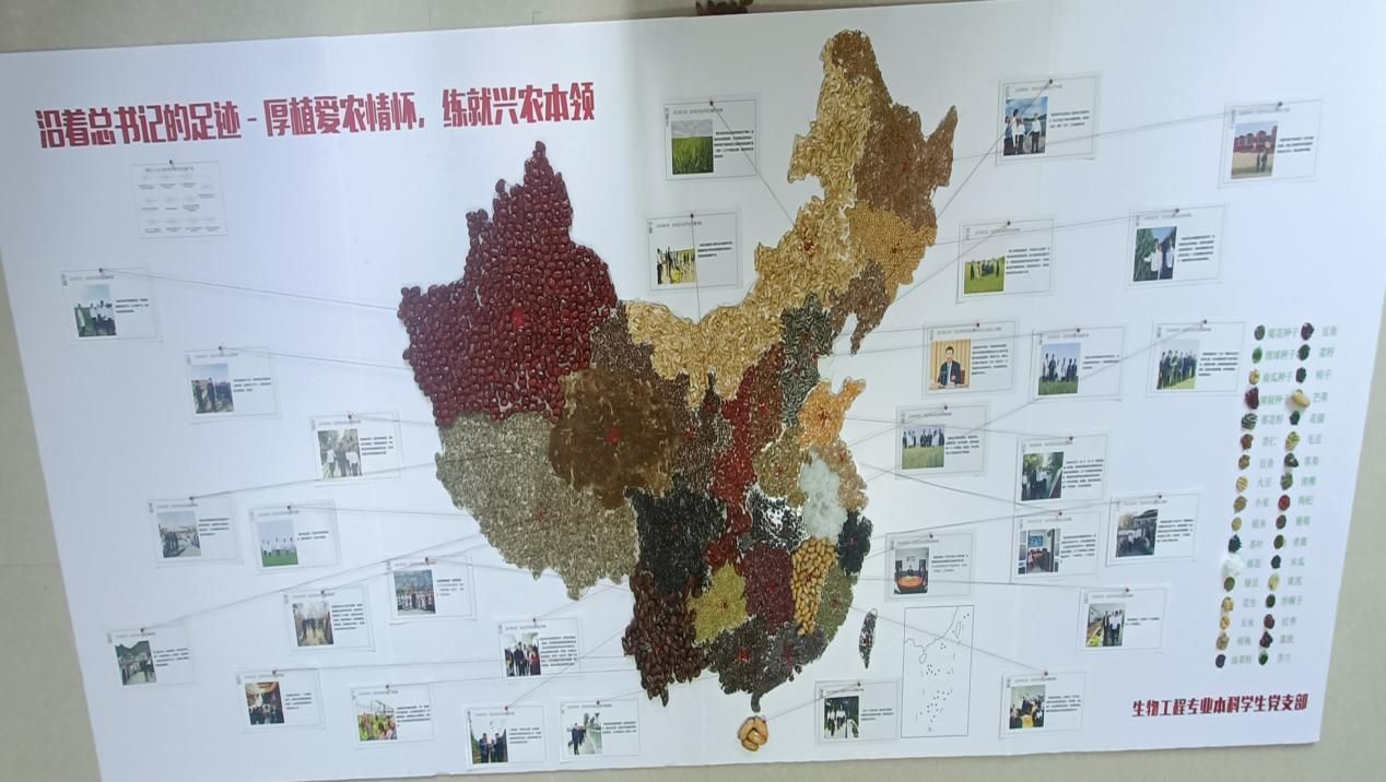 主题党日活动上,党支部首先组织全员学习了《习近平关于“三农”工作的论述摘编》和习近平总书记在各省、直辖市、自治区考察“三农”工作的重要指示精神。随后,组织制作中国地图种子画,将各地区特色农作物的种子粘贴到相应的位置,用种子绘制一幅五彩斑斓的中国地图。同时,将习近平总书记在各省、直辖市、自治区考察调研的重要讲话内容展示在种子画上,沿着习近平总书记的“三农”足迹,厚植爱农情怀,练就兴农本领。朴实的种子画作品抒发同学们了对党和祖国的热爱,对“三农”工作的热爱;坚定了同学们听党话、跟党走的信念和献身“三农”事业的决心;鼓舞同学们扎根基层,做到“把论文写在京郊大地上,把成果凝结在农民的收获里”。