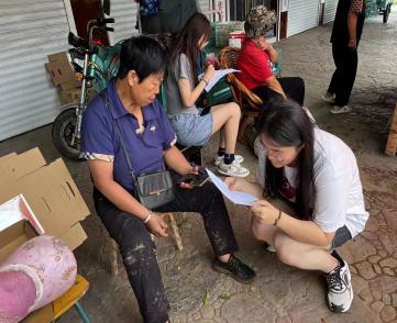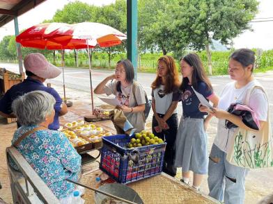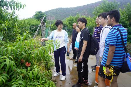座谈结束后,党支部组织同学们走进“田间课堂”,刘悦萍老师就“双碳”战略下桃树的栽培方式、病害的防治及菌肥的促生等内容进行了讲解,并指导同学们对桃树的根、茎、叶、果、土壤等进行采样。党员们撸起袖子,走进桃林,无惧烈日,全身心投入到实践中,主动将课本知识与生活实践相结合。随后,党支部组织同学们针对桃罐头制作情况、农村老年人基础病情况、胡家营村周围医院建设情况进行了专项调研。