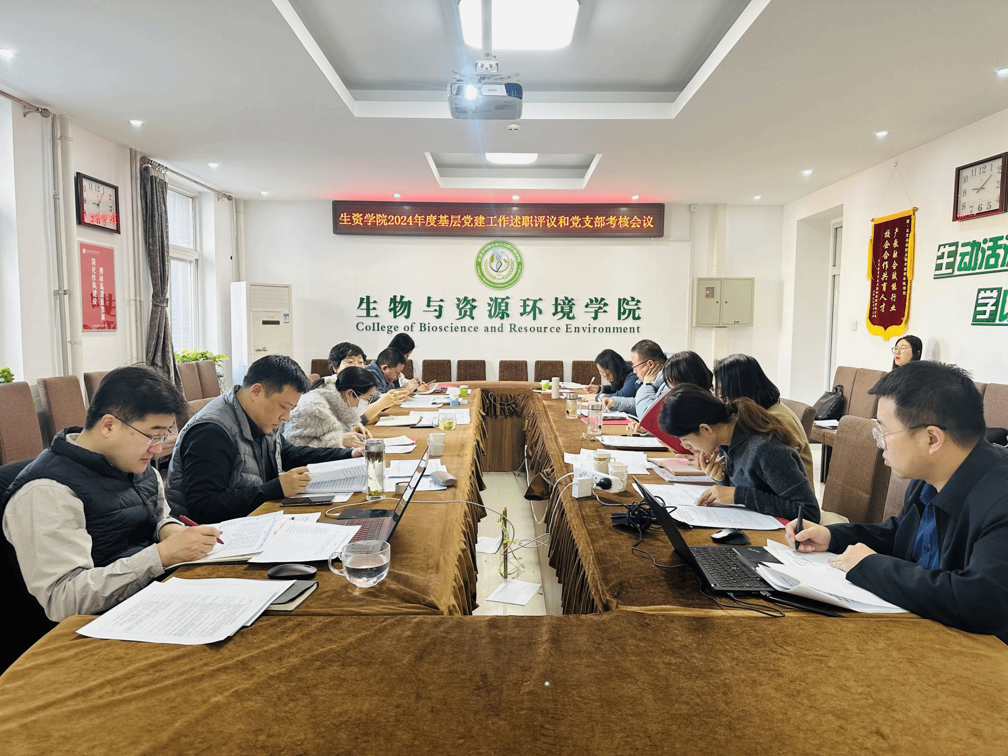 2024年12月27日上午,生物与资源环境学院召开2024年度党支部书记抓基层党建工作述职评议考核会。国际学院专职组织员靳珂珂到会指导。会议由学院党委书记袁中立主持,学院党委委员、领导班子成员、全体党支部书记参会。
