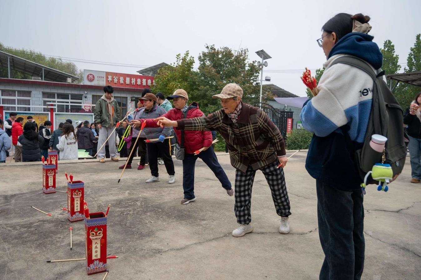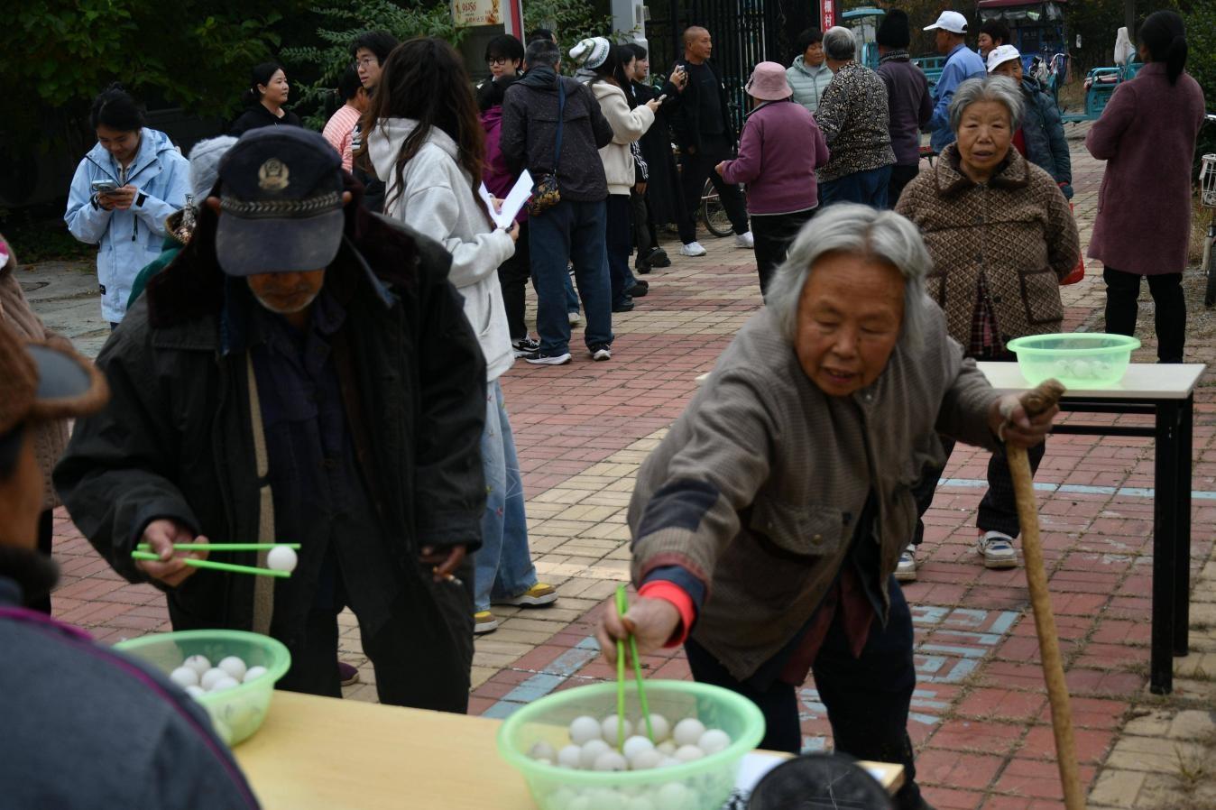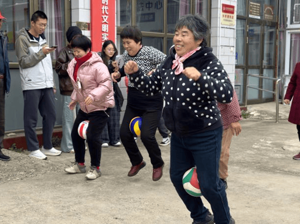 运动会围绕中老年村民需求,精心设置“沙包掷准”“投壶”“企鹅慢跑”等六大趣味项目,吸引80余名村民踊跃参与。赛场上,老人们精神矍铄、全情投入,学子们耐心引导、加油鼓劲,现场欢声笑语不断。