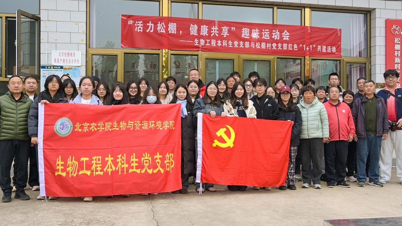 生物工程本科生党支部与平谷区刘家店镇松棚村党支部以红色“1+1”共建为纽带,联合举办“活力松棚,健康共享”村民趣味运动会。这场融合党建联动、敬老爱老、实践育人的活动,不仅是支部服务乡村振兴的生动实践,更是一堂将论文写在祖国大地上的鲜活思政课。