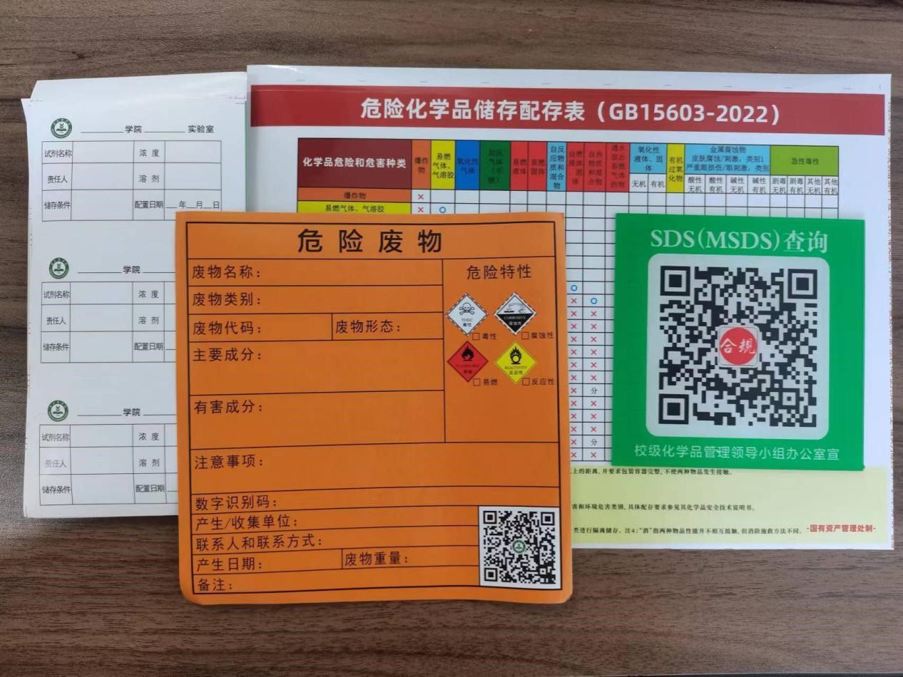 培训活动中,给同学们分发了SDS(MSDS)查询二维码、试剂配制标签、危险化学品储存配存表等相关材料。