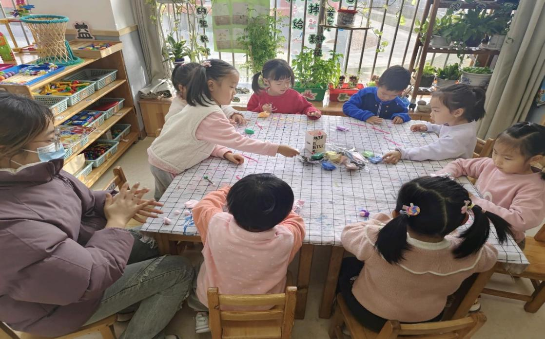 在中四班,丁思萁和奚宇旋为小朋友讲解各种各样的花朵,孩子们看到五颜六色的花后个个激动不已,迫不及待想用粘土捏出一朵朵小花;在大一班,张若楠和陈乐妍向小朋友们讲解了氧气、二氧化碳等气体的球棍模型,和小朋友们一起用彩泥捏出了它们的形状;在大二班,李奕涵和李春琦讲解了“农业资源与环境”的构成,分开讲解农业、资源、环境,小老师循循善诱,小朋友们也积极回应,还用彩泥做小花,分享小礼物;在大三班,张千一讲解了粘土昆虫,向小朋友们展示了各种各样的小昆虫,带领他们用粘土做小昆虫。