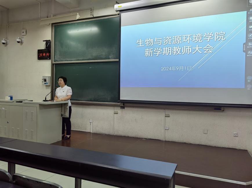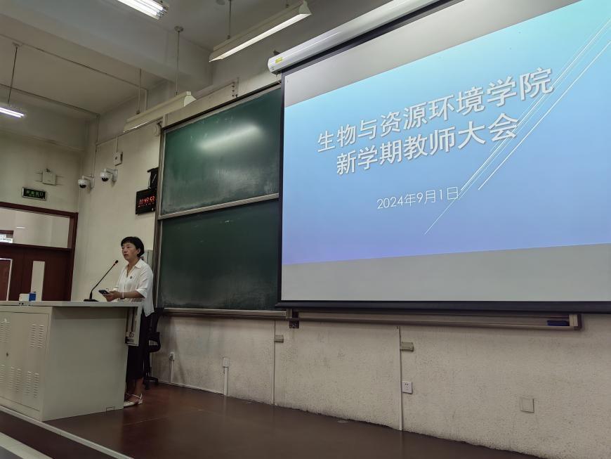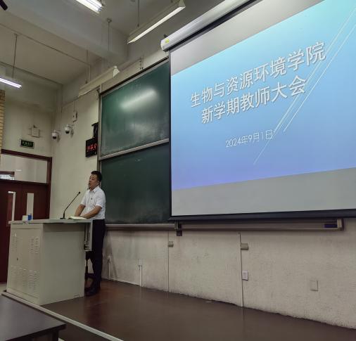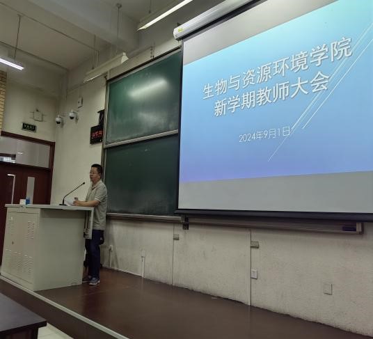于9月1日新学期第一天召开了全体教职工大会。会议由学院党委书记袁中立主持。