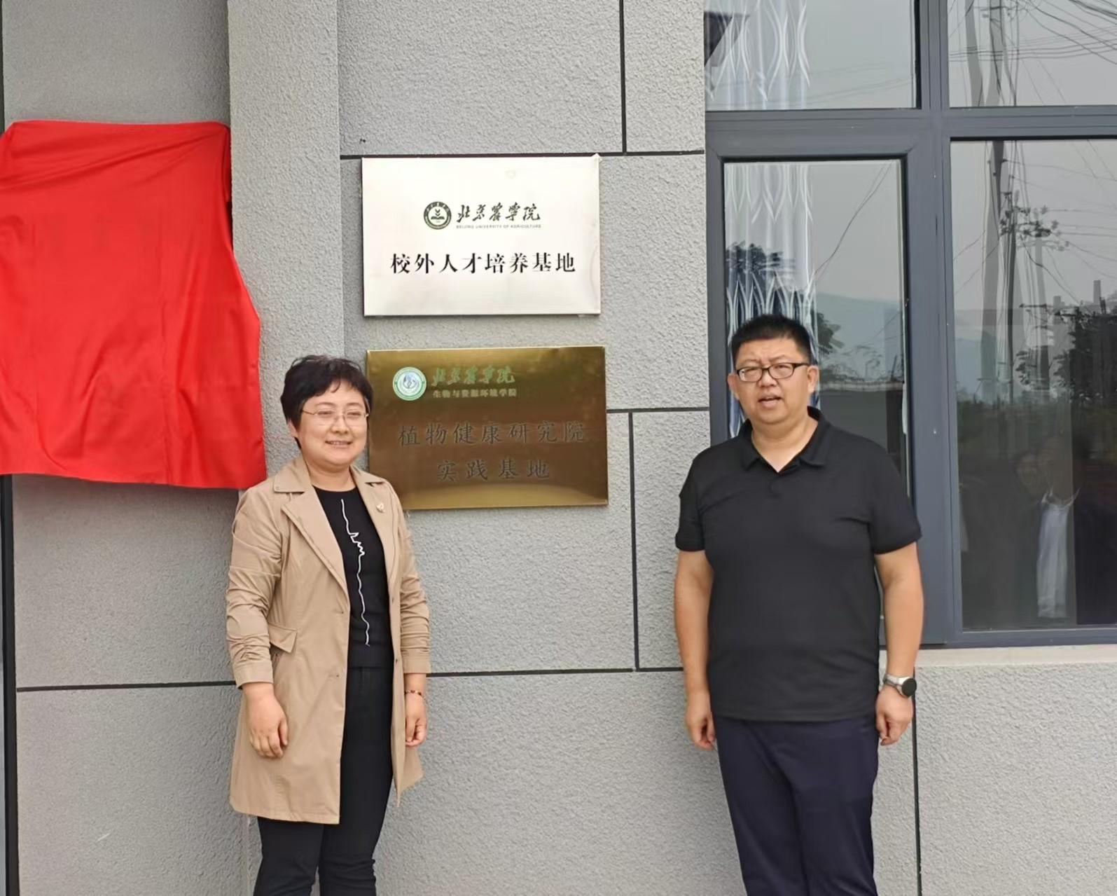 座谈后,袁中立与张永胜共同签署了人才培养合作协议,标志着双方合作迈入了新阶段。紧接着,袁中立与张晓臣共同为“北京农学院校外人才培养基地”与“植物健康研究院实践基地”揭牌,不仅为北京农学院师生提供了宝贵的实践平台,更为促进农业科技进步、助力乡村振兴战略实施奠定了坚实的基础。