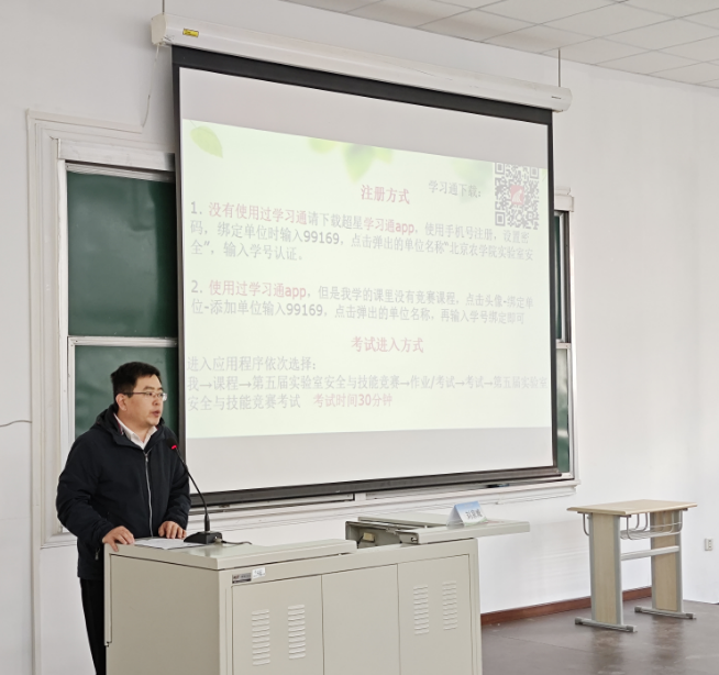 副院长梁琼主持,他首先对到场的嘉宾和参赛师生表示热烈欢迎,并强调了实验室安全的重要性。资产与实验室管理处副处长刘京威指出实验室安全是保障教学和科研安全运行的底线,今年首次将教师纳入竞赛活动中,旨在通过竞赛促进学习,提升技能,实现师生共筑安全防线、共建安全校园的目标。