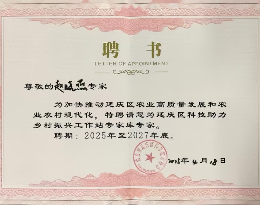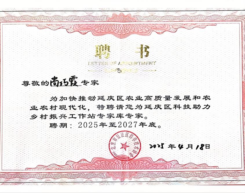 尚巧霞、刘悦萍、赵晓燕和黄体冉四位老师获聘成为延庆区科技助力工作站专家。