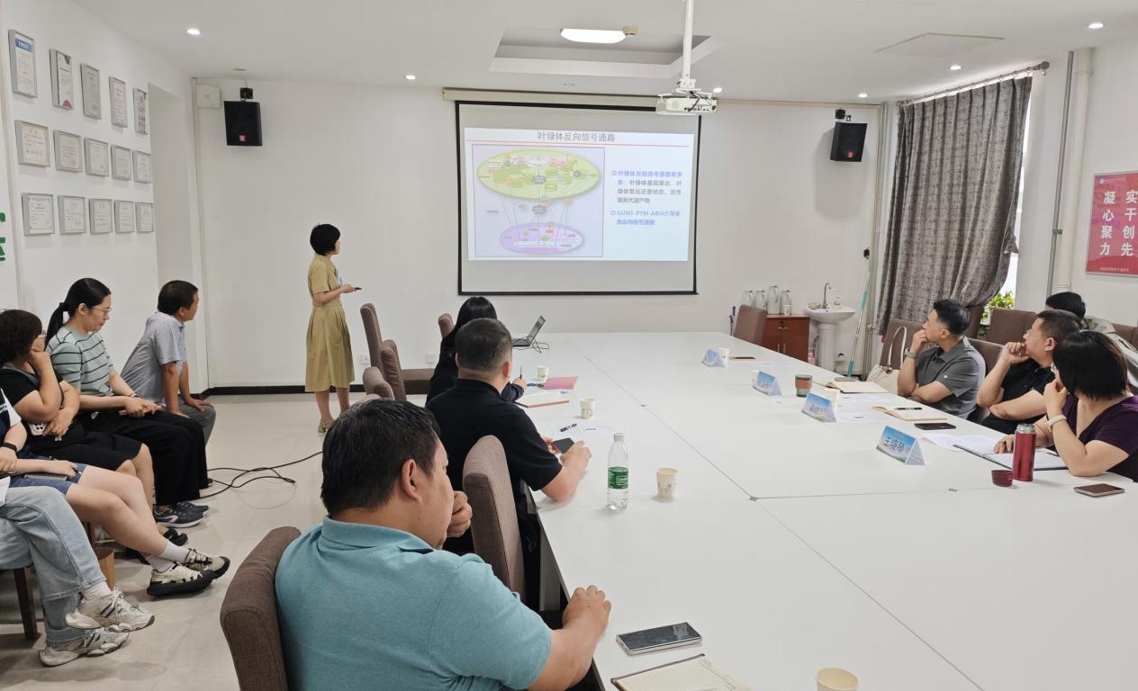 徐秀美教授聚焦光合捕光色素蛋白复合物,就生物合成路径和组装调控机制进行了系统阐释,并结合合成生物学前沿视角,剖析了该复合物在人工光合系统构建、生物制造等领域的应用潜力。徐教授介绍了科研团队在合成生物学与光合作用交叉领域取得的多项突破性进展,如揭示了LTD蛋白偶联LHCP转运与叶绿素合成的分子机制,为解决“色素与蛋白协调生成”这一行业难题提供关键证据;依托国家重点研发计划,通过合成生物技术将优化的光保护模块成功导入烟草、水稻等底盘作物,显著增强了作物抵抗光合逆境的能力;创新推进“细胞工厂”高效合成计划,重构叶黄素与玉米黄质代谢通路,突破天然提取效率低、成本高的产业瓶颈,推动了传统提取工艺向生物智造升级。