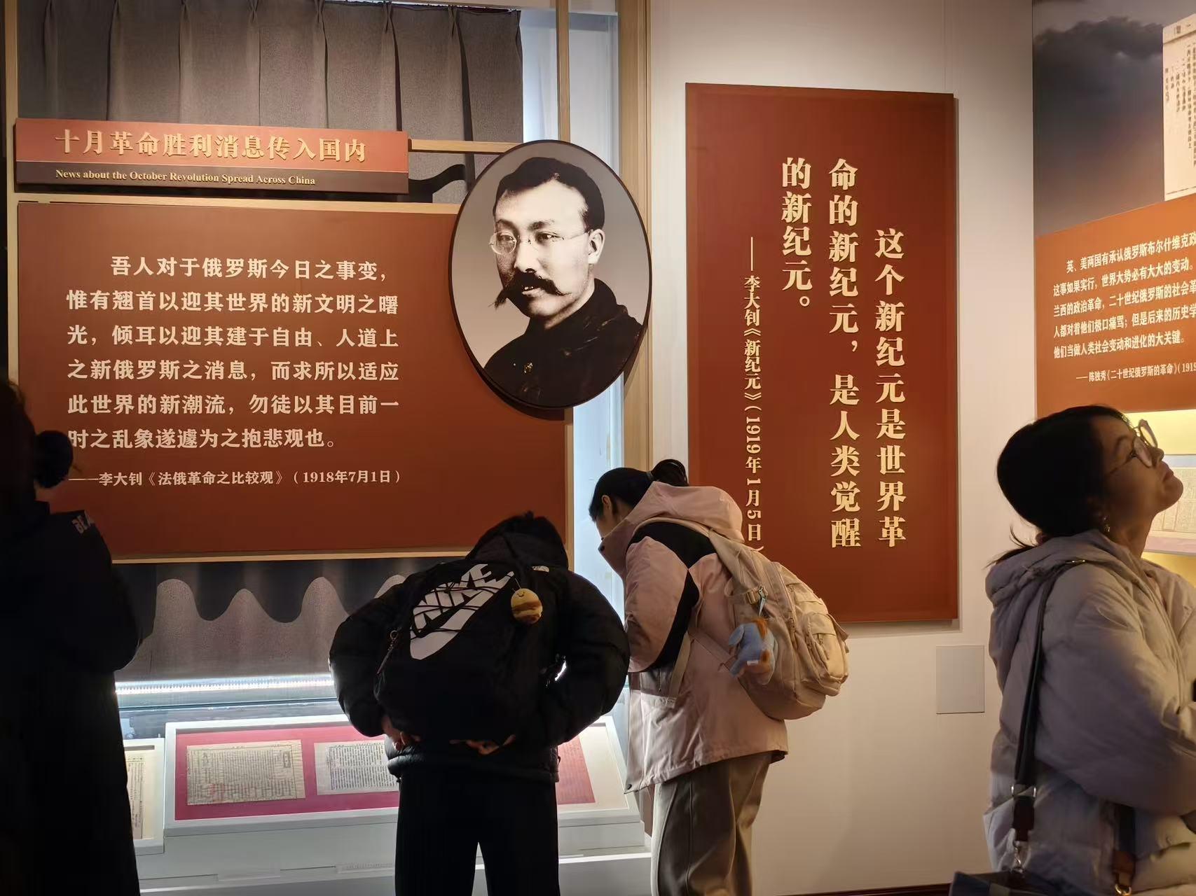 北大红楼作为新文化运动的重要发源地、五四运动的策源地以及中国共产党早期在北京革命活动的核心基地,承载着中国共产党创建初期的珍贵历史记忆。在讲解员的引导下,学员们依次参观了“光辉起点”“五四运动”“马克思主义传播”等主题展厅。通过陈列的《新青年》杂志、李大钊工作手稿、学生运动历史照片等珍贵文物,以及复原的办公室、图书馆等历史场景,学员们直观感受到革命先辈们以笔为剑、以青春热血点燃民族觉醒的壮阔历程。