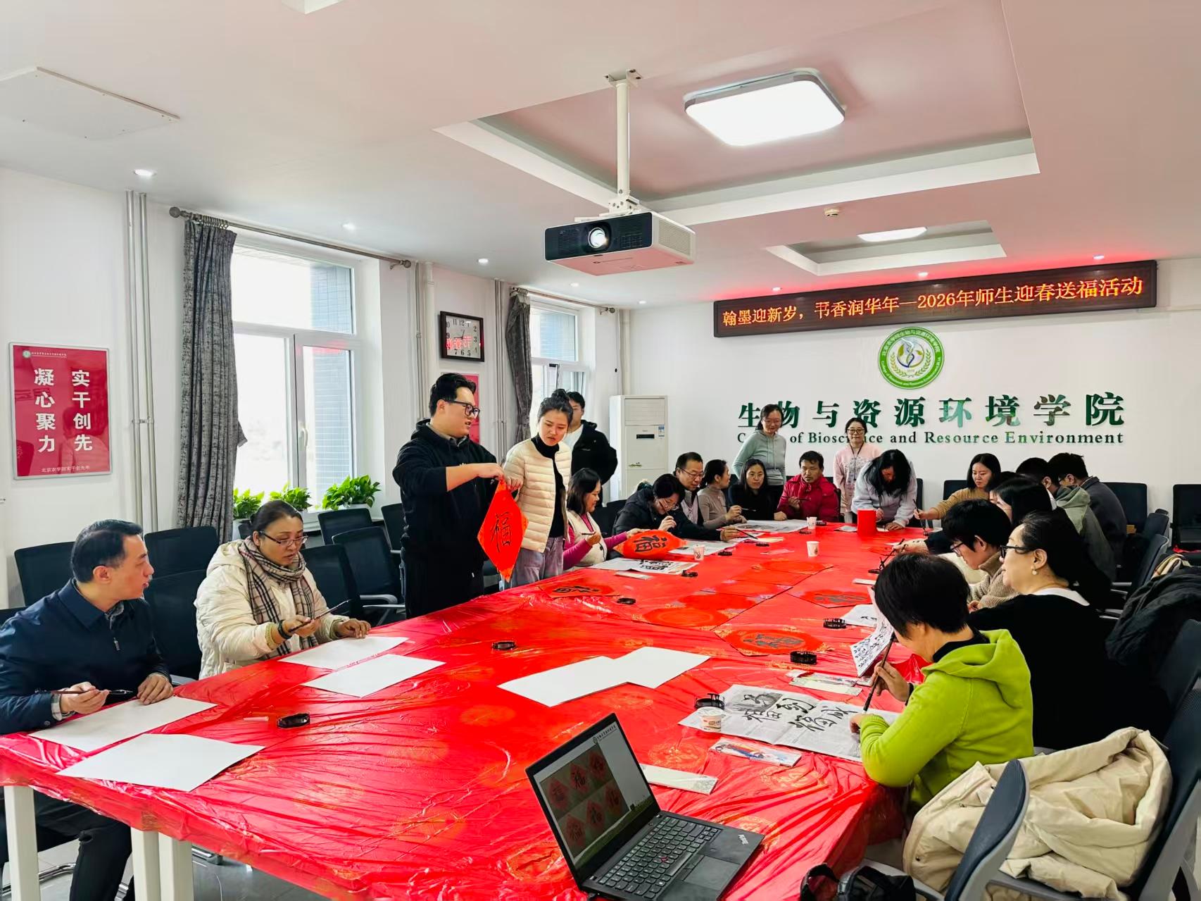 举办“翰墨迎新岁,书香润华年”师生迎春送福活动。本次活动由学院工会、团委、学生会联合举办,吸引众多教师积极参与,师生齐聚一堂,以笔墨寄情,以书香迎春,共同书写新春祝福。